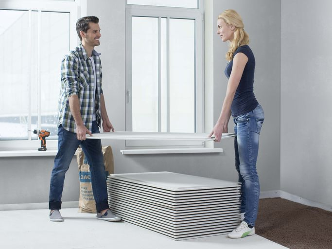Когда во время ремонта речь заходит о плоскости пола, то основными вопросами для жильцов и строителей являются следующие: Можно ли учесть все эти пожелания и критерии, не используя множество различных материалов, а применив только одно техническое решение? Специалисты компании КНАУФ отвечают: «Да». Это возможно, если использовать технологию сухой сборной стяжки КНАУФ-суперпол. Важными факторами при выборе именно сухой стяжки КНАУФ являются: снижение трудозатрат и сроков работ (значительно сокращается время до укладки финишного покрытия); снижение нагрузки на несущие конструкции и улучшение тепло- и звукоизоляционных характеристик помещения. Что такое КНАУФ-суперпол? Сухая сборная стяжка КНАУФ-суперпол представляет собой комплект специально подобранных материалов, необходимых для устройства ровного и качественного пола, а также для придания ему тепло- и звукоизоляционных свойств. Конструкция КНАУФ-суперпола состоит из элементов пола (ЭП) и специальной сухой керамзитовой засыпки КНАУФ.