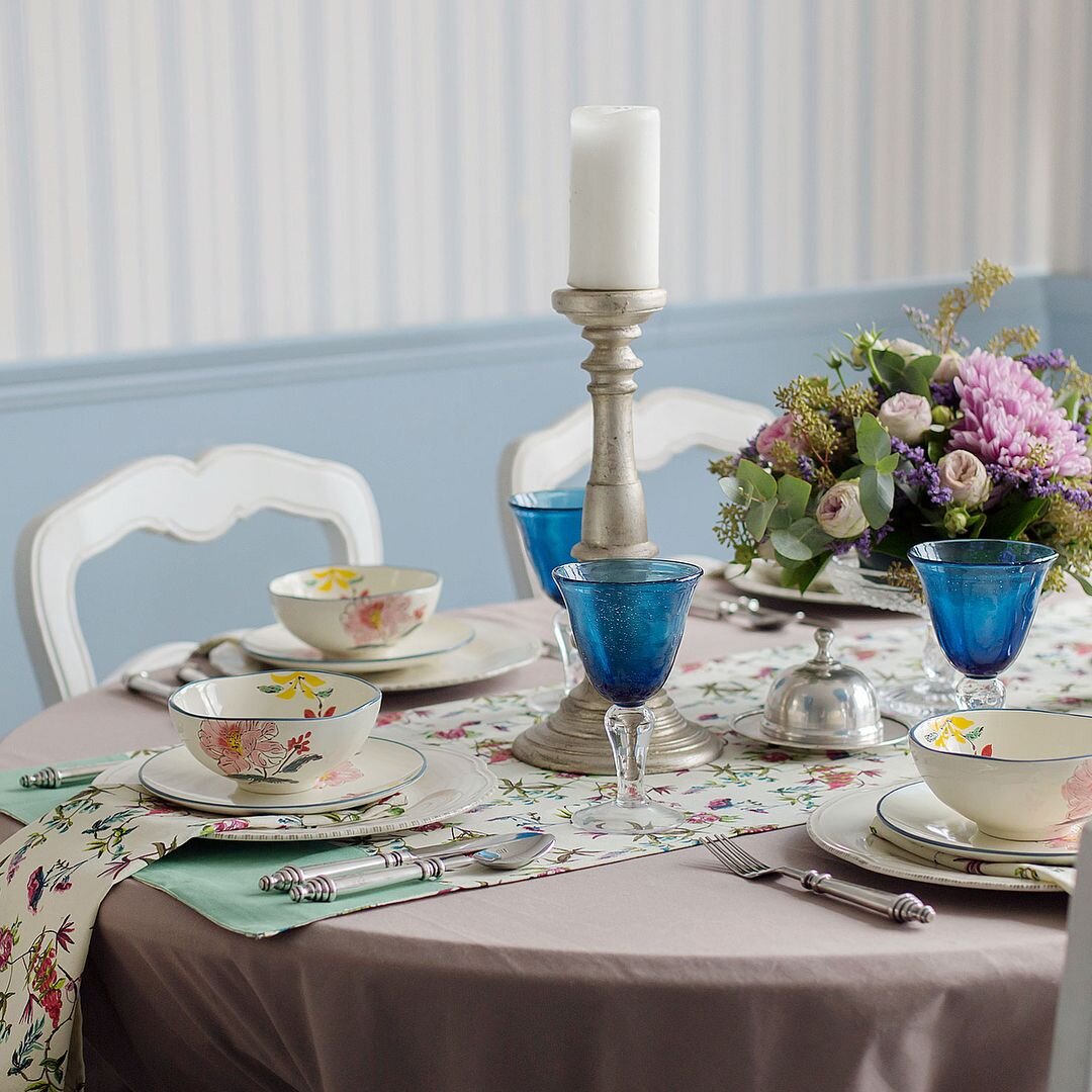 ✓ На белые тарелки ставим нарядную посуду, в тон с текстилем;
