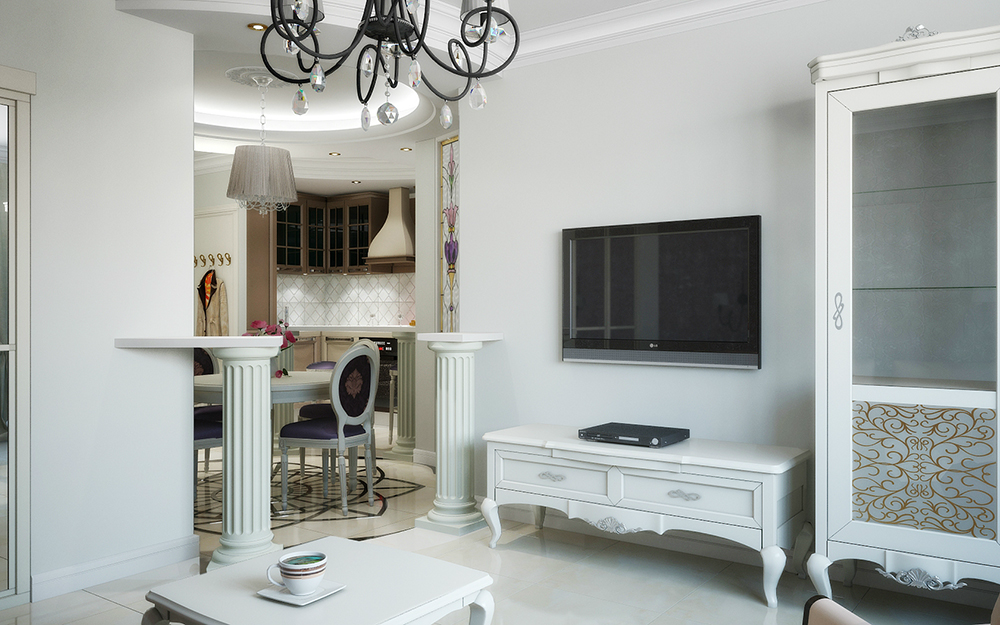 Круговая планировка квартиры позволила максимально использовать каждый квадратный метр этой жилплощади и гармонично объединить все помещения в единый архитектурный ансамбль. Легкость и воздушность стали девизом этой квартиры. Импровизация на тему классики удалась.