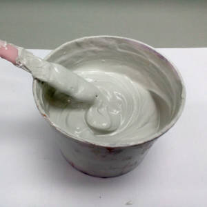 3. После перемешивания смесь (цементный раствор) приобрела серо-голубой цвет.