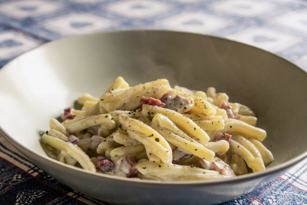 Очень нежная, почти как паппарделле или тальятелле, но значительно шире. Из этих макарон готовят легендарное феттучини альфредо, его придумали столетие назад. Повар просто сдобрил пасту маслом, добавил пармезан и немного воды, в которой паста варилась. Вышло просто, но в то же время изысканно.