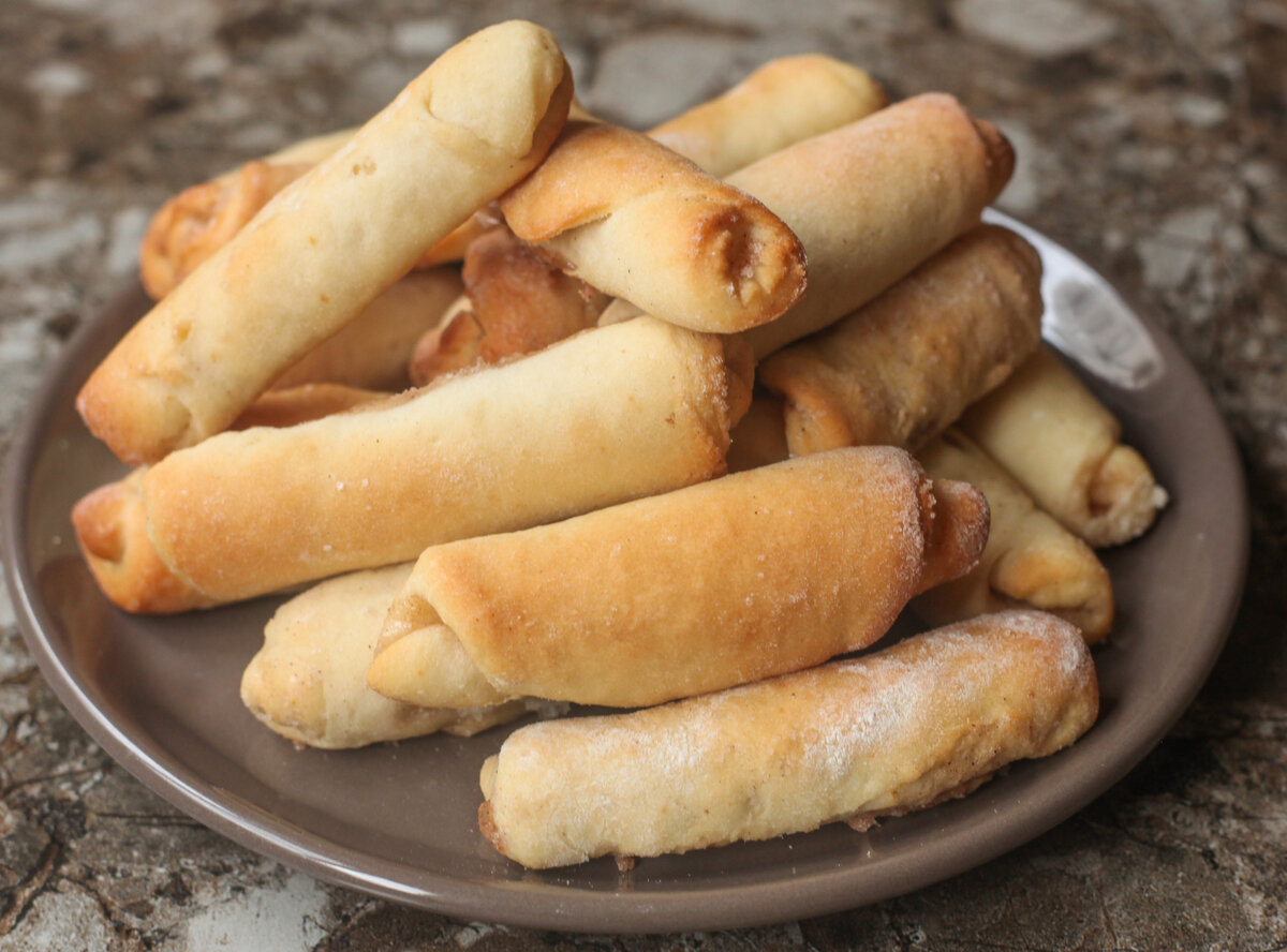 А выпекается печенье в духовке 15 минут — при температуре 180 градусов. Вынимаем румяные трубочки и сразу же подаем к чаю. Печенье получается очень нежным внутри и чуть хрустящим снаружи, с приятным ароматом корицы. Готовьте, пробуйте, Приятного аппетита!