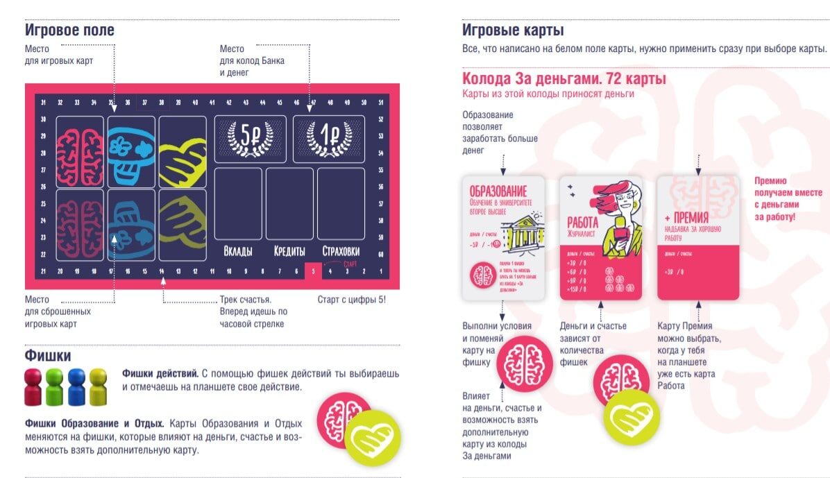 Игра предназначена для детей 9-13 лет, но при желании играть в нее могут все. В описании говорится, что настолка «Не в деньгах счастье» «отражает современную реальность», победу в ней одерживает тот, кто «первым достигает условленного уровня счастья персонажей». Судя по названию игрокам предстоит учиться достигать счастья в жизни, довольствуясь малым.