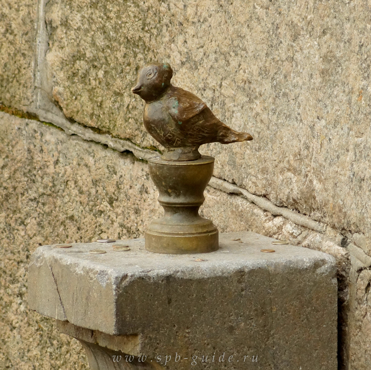 Бронзовый памятник легендарному Чижику-Пыжику открыт в 1997 году. Автор памятника - Резо Габриадзе. Миниатюрная фигурка птички приютилась на маленьком подножии гранитного парапета моста через Фонтанку неподалеку от Михайловского замка.