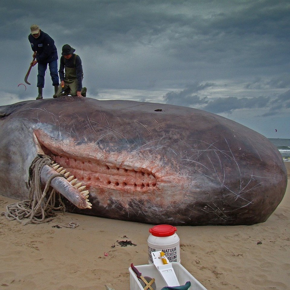 Пасть кашалота расположена в выемке снизу головы. Длинная и узкая нижняя челюсть усажена крупными зубами, которых обычно 20 — 26 пар, причём