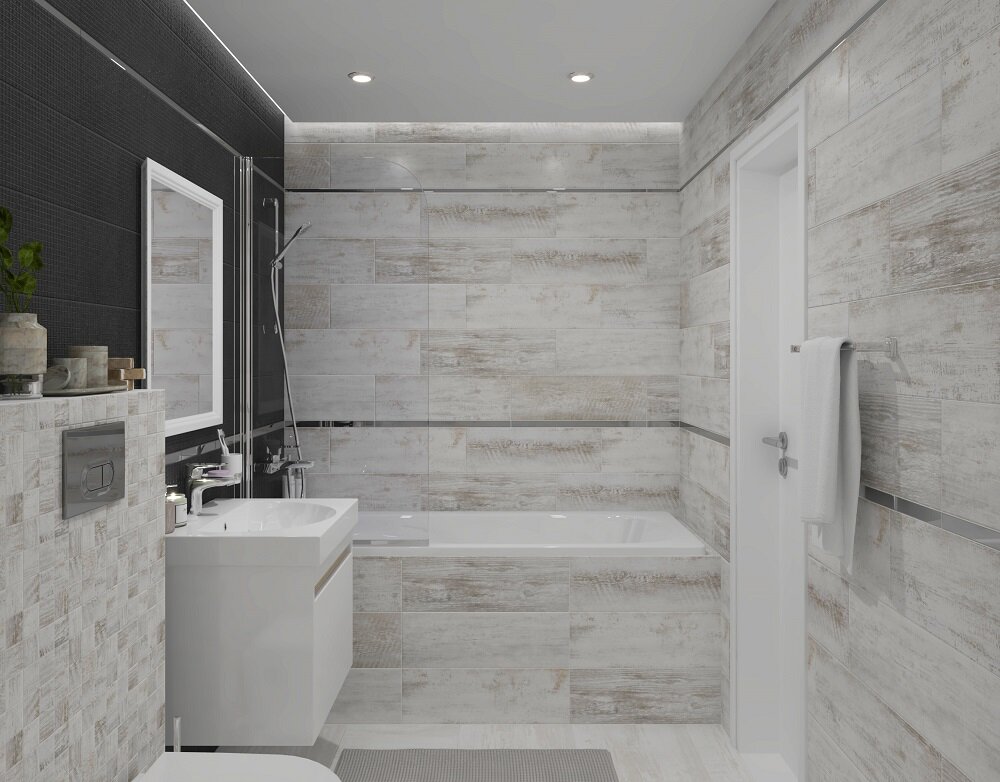 При выборе плитки необходимо знать, что стены и пол ванной имеют контакт с бытовой химией, оставляющей пятна.
