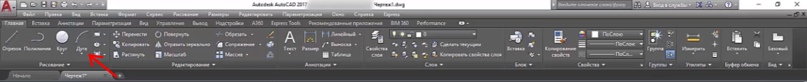 Для начала нужно активировать команду дуга Меню->Рисование->Дуга или Главная->Панель рисования->Дуга.