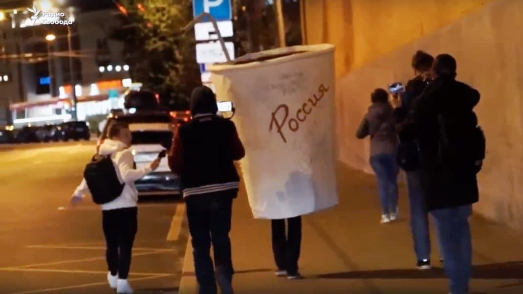 Активиста Ивана Сажина оштрафовали на 10.000₽ за прогулку в костюме бумажного стаканчика по Москве, которая прошла в сентябре