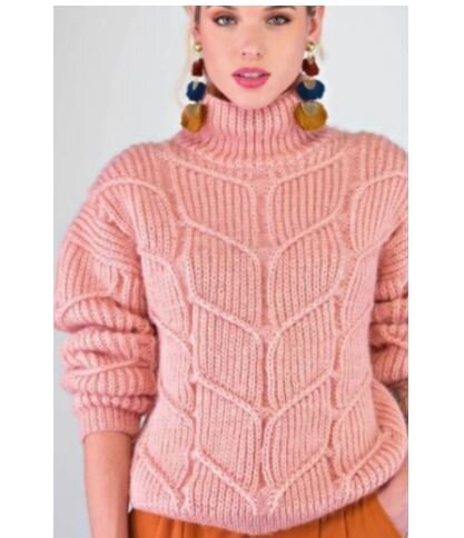 Вариант 1. Свитер нежно-розового цвета с высокой горловиной.