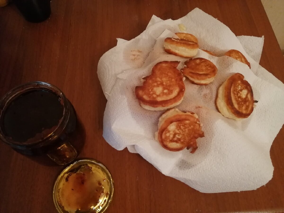 Оставляем тесто и ставим сковороду на огонь. Важно! Масло жалеть не надо, слой +- с палец толщиной. Ждём пока разогреется и жарим выкладываем по половине столовой ложки. Жарим с двух сторон на средне-сильном огне.