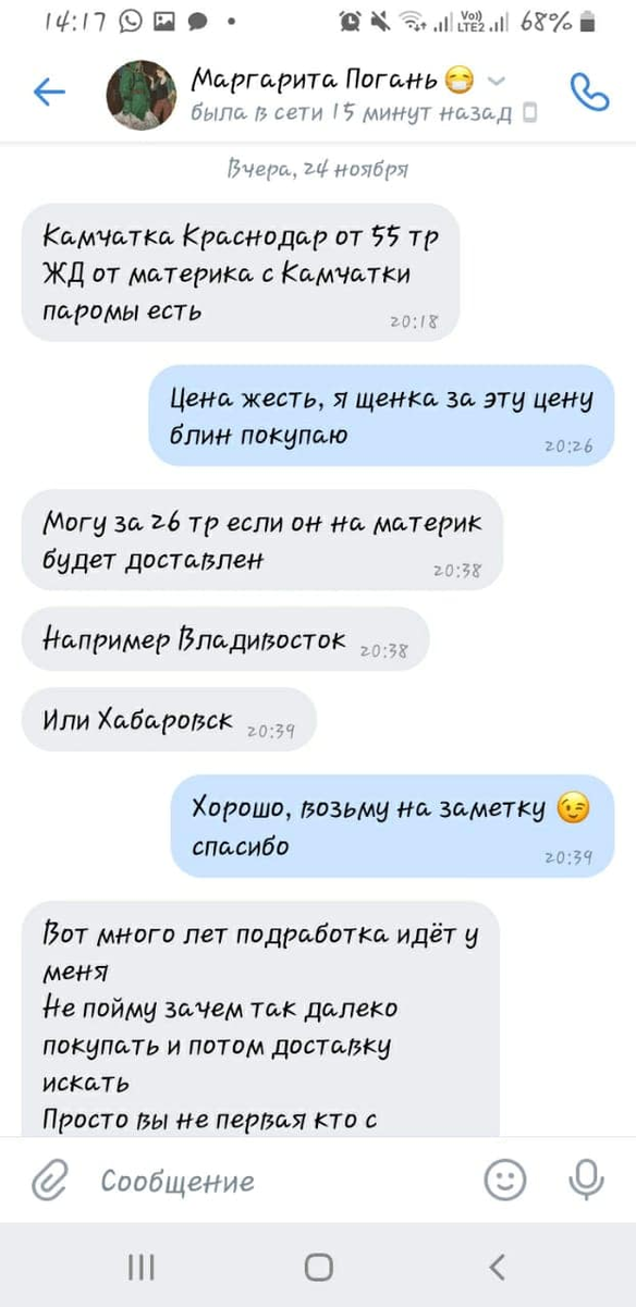 Так, например, девушка искала доставку щенка Камчатка - Краснодар. Даже замазывать не буду имя, вдруг столкнетесь, чтобы были готовы.