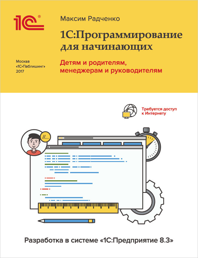 1. это Книга М.Радченко "1С:Программирование для начинающих. Детям и родителям, менеджерам и руководителям" вот так она выглядит: Она хорошо подойдет для знакомства с программированием.