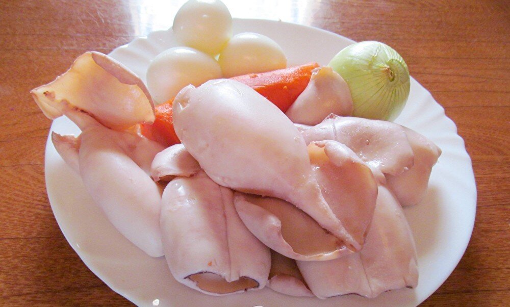 Отваривать кальмар, опуская в кипящую воду; варить 2 мин с момента закипания. Остудить под холодной водой, иначе мясо будет жёстким.