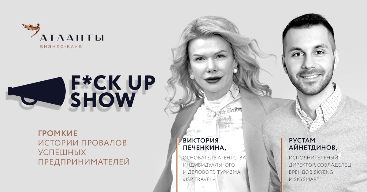 Бизнес-клуб «Атланты» собрал самые громкие истории провалов успешных предпринимателей и выпустил на YouTube в формате F*CK UP SHOW. Вас ждут захватывающие, откровенные, пугающие и поучительные бизнес-истории, в которых все пошло не так.