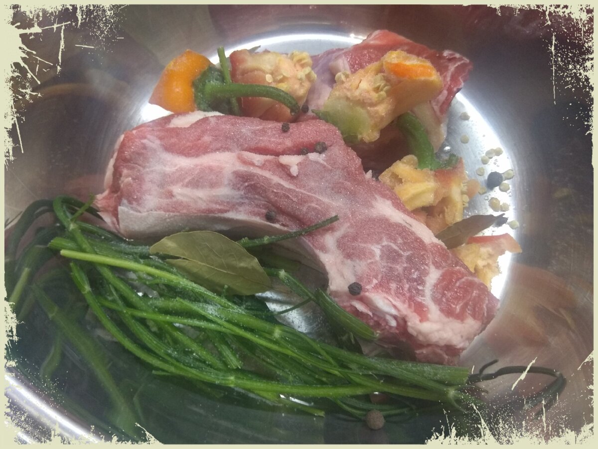 Заливаю 5 литров воды, ставлю на огонь, довожу до кипения, снимаю пенку, убавляю огонь на минимум и забываю часа на два.