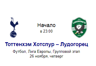 Прогноз на матч Тоттенхэм Лудогорец с коэффициентом 3.05 от Филиппа Кудрявцева