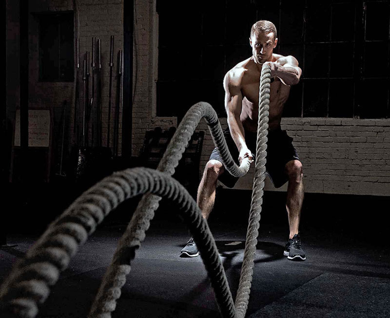2) Упражнение с канатом(чередование волн в полуприседе)