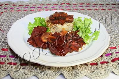 Мясо хоть и мягкое, но не разваливающееся. Хорошо ощущается фактура волокон. Мягкие грибы гармонируют с упругостью говядины. Соевый соус усиливает аромат грибов.