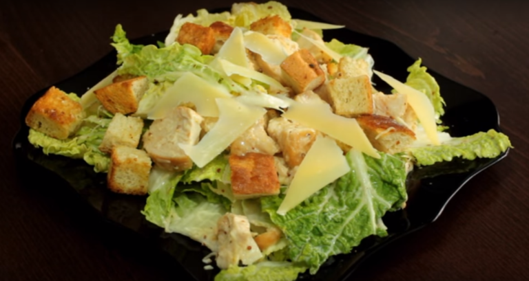 Классический рецепт салата Цезарь с курицей, сухариками и сыром