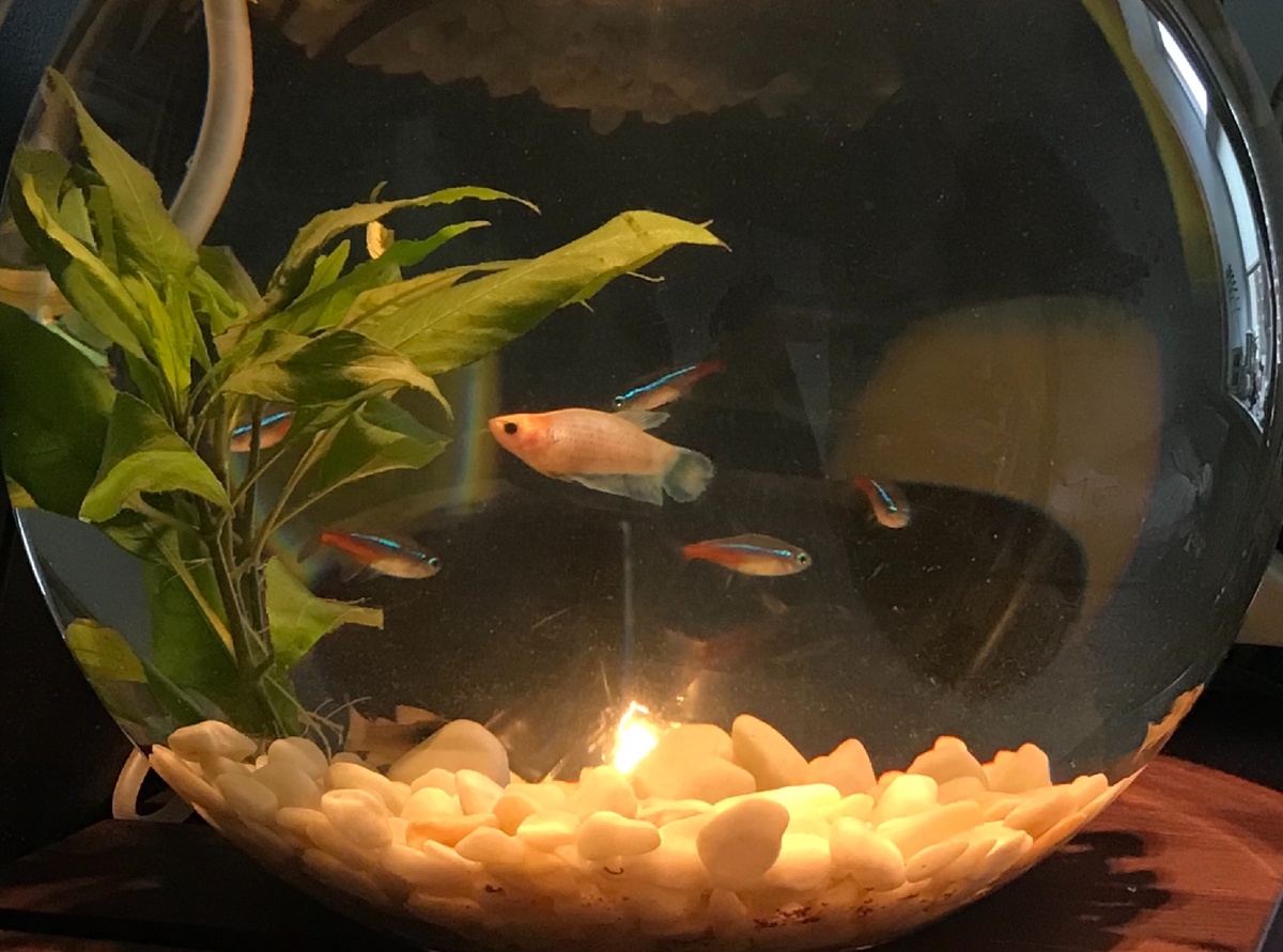 - Да, мы бы хотели купить двух крупных рыбок, которые уживутся в аквариуме на 10 литров. Подскажите, пожалуйста, какие подойдут?