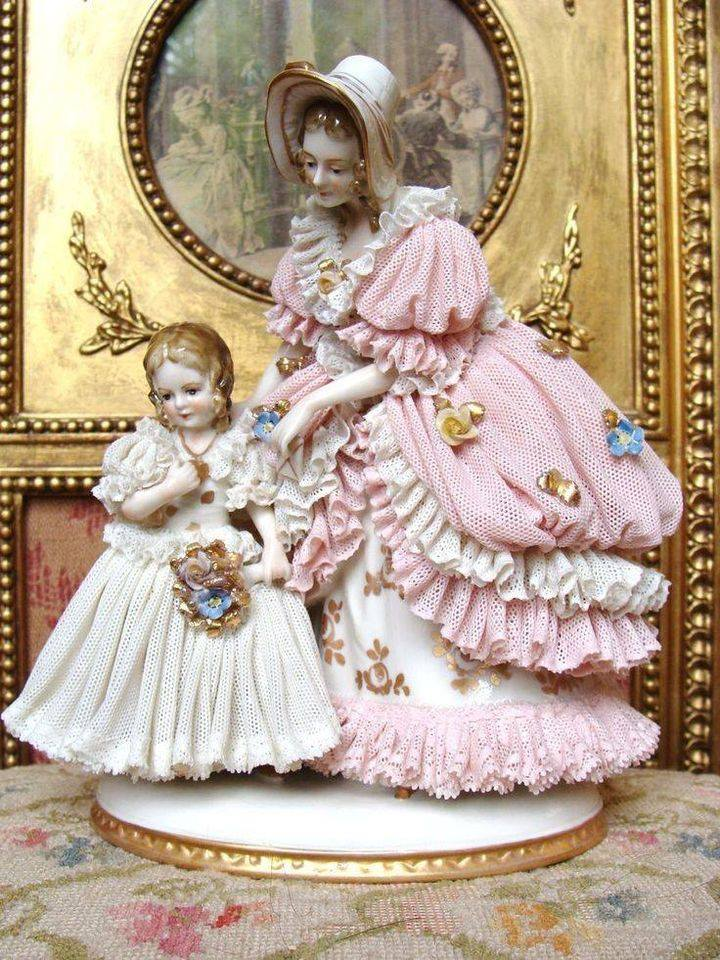 При изготовлении кружевного фарфора используют настоящие кружева из хлопчатобумажной ткани, пропитываемые фарфоровой массой. В эти "сырые" фарфоровые кружева "одевают" фигурки. При обжиге хлопчатобумажные кружева сгорают, и остаются необыкновенные фарфоровые кружевные платья.