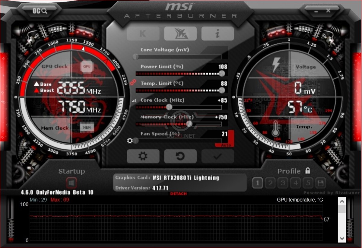 Если у вас видеокарта от партнёра и она имеет дополнительное питание то приступим к разгону, для начала я бы рекомендовал разгонять через программу MSI Afterburner , для новичков она покажется сложной, но знать там надо только 3 пункта: