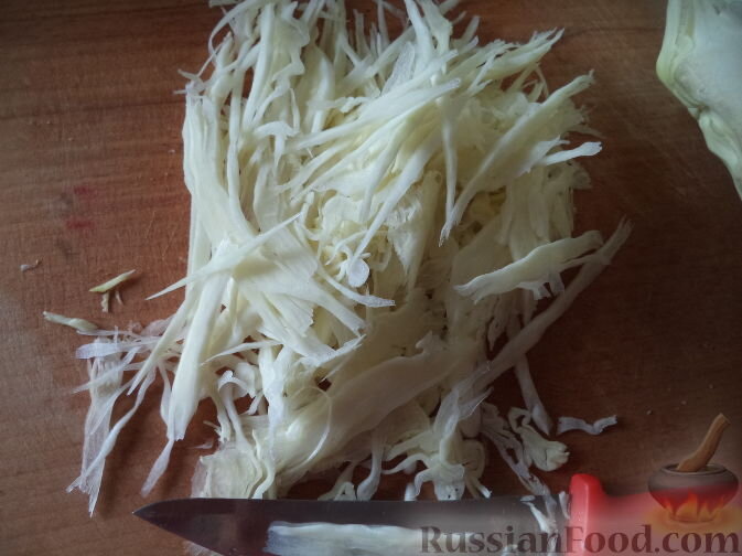 Капусту нашинковать соломкой.