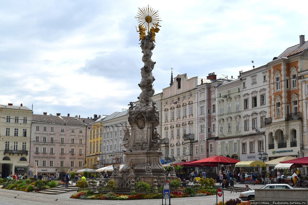 Кроме музея в здании до сих пор располагается канцелярия мэра и муниципальное начальство, а также есть частные дворы и квартиры. Поодаль от ратуши, на юго-восточном углу площади, высится Старый собор (Alter Dom), являющийся образцом классической архитектуры барокко, возникший как иезуитская церковь в конце 17 века. Его ещё называют собором Святого Игнатия, в честь святого, который основал орден иезуитов. Внешне собор выглядит довольно обычно – две абсолютно одинаковые башни и невысокий купол между ними. А вот внутри у него, по рассказам, так как я его не посещала, роскошный интерьер. Декор выполнен с использованием розового мрамора, колонны украшены витиеватыми декоративными элементами, в храме находится много статуй и совершенно уникальный алтарь, который украшают мраморные скульптуры. Я его не посещалаАрхитектор собора – Пьетро Франческо Карлоне. В угловом здании находится Вассер-Аптека Бетховена (Wasser-Apothek). Примечательна она тем, что принадлежала некогда Иоганну ван Бетховену, аптекарю, брату композитора Людвига ван Бетховена. Братья поддерживали самые тесные отношения, Людвиг часто здесь бывал и некоторые произведения были написаны именно здесь, например, Восьмая Симфония, 1812 года. Кстати музыку Бетховеа, как и других композиторов, можно услышать на концертах, которые проводятся на площади.В центре площади возвышается двадцатиметровая беломраморная колонна Святой Троицы или "Чумная колонна". Возведена она была в 18 веке трём святым Св. Стефану, Св. Флориану и Св. Карлу Борромео в благодарность за спасение города от войны, пожара и чумы. Об этом на ней есть благодарственные надписи на латыни от имени гильдий, императора и жителей Линца. Святые были выбраны неслучайно: св. Себастьян считался защитником от многих смертельных болезней, св. Флориан — покровитель пожарных — помогал при пожарах, а св. Карлу Борромео всегда молились об избавлении от чумы.Габсбурги особенно любили и почитали Св. Троицу. Она служила символом единства императора, парламента и нации, или Австрии, Венгрии и Богемии.Сама группа Троицы выполнена из меди, которую потом позолотили, в стиле ампир. Средства на её строительство собрали сами горожане.На западной стороне площади можно увидеть фонтан Нептуна, украшенный гербами семи центральных городов Верхней Австрии — Линц, Штайр, Вельс, Гмунден, Фёклабрук, Фрайштадт и Энс.Здесь же начинает свое движение жёлтый экскурсионный паровозик Linz City Express, на котором можно быстро осмотреть все достопримечательности города. От площади разбегаются в разные стороны симпатичные улочки, по которым мы ещё прогуляемся, поэтому точку в повестовании не ставлю.