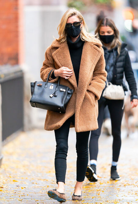 Несмотря на то, что в Нью-Йорк уже пришла прохладная погода, Ники Хилтон никак не может расстаться с прежним летним гардеробом. Не отказывает звезда и балеткам, которые мы можем представить только во время теплого сезона. Чтобы не замерзнуть, Ники решает утеплиться сверху: девушка сочетает легкую обувь с джинсами-скинни, водолазкой и мягким плюшевым пальто карамельного оттенка.