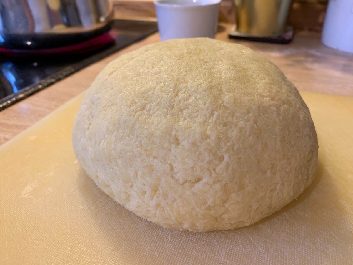 Все хорошо перемешайте и понемногу всыпайте муку, чтобы получить мягкое тесто, которое слегка липнет к рукам. (Возможно вам потребуется чуть меньше муки, тесто не должно быть очень крутым и твёрдым)