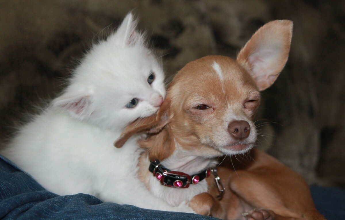 Если пёсик сам по себе дружелюбный, то он может тепло общаться даже со взрослым котом, который живёт вместе с ним. И чувство материнства здесь ни при чём.