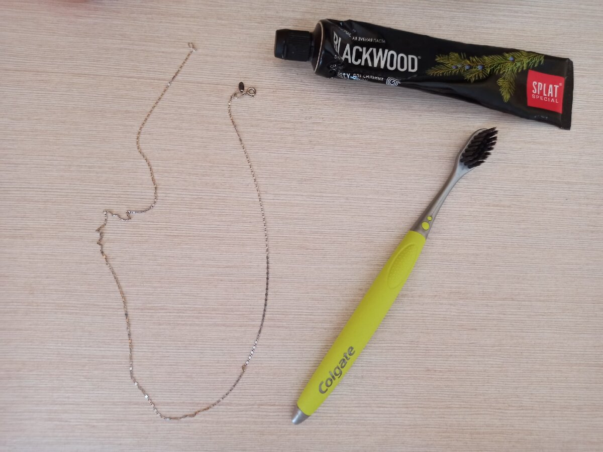 Пытаюсь убрать черноту с серебряной цепочки, используя зубную пасту. Метод сработал на 80 процентов