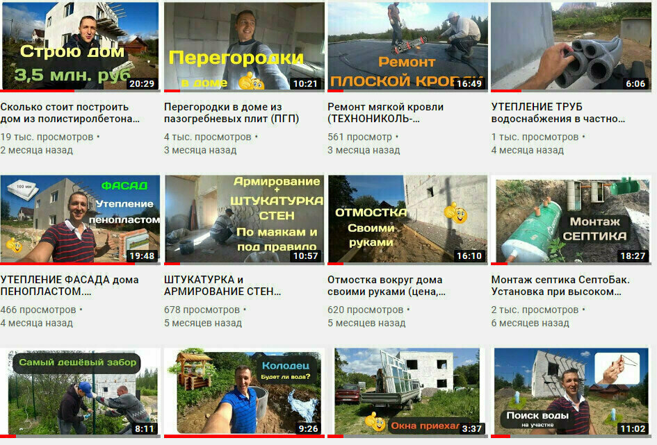 Все видео-отчёты о моей стройке