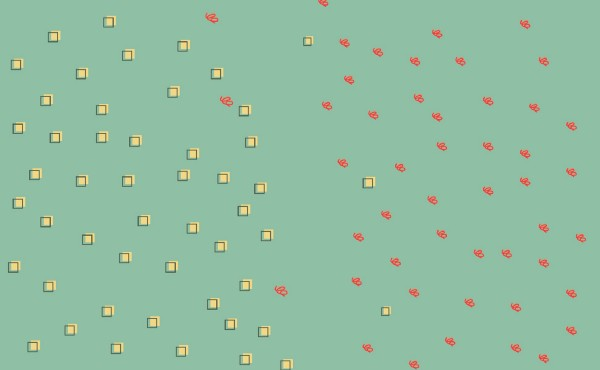 Между двумя группами точек данных есть небольшое пространство. Но ближе к центру неясно, к какому классу принадлежит каждая точка.