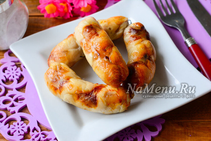 🔥Выкладываю колбаски на противень и отправляю его в разогретую до 190 градусов по Цельсию духовку на 30-35 минут