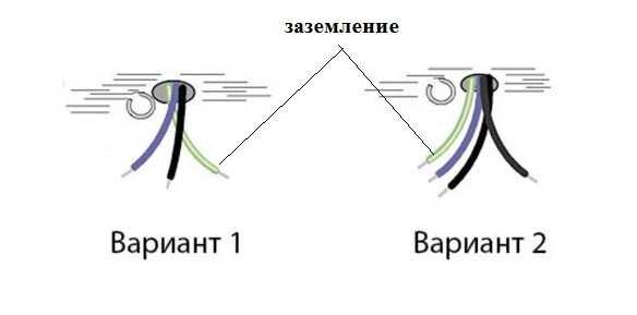 Провод заземления есть далеко не всегда, только в домах новой постройки или после капитального ремонта с заменой электропроводки. Согласно стандарту он имеет желто-зеленый цвет и подключается к такому же проводу на люстре. Если на вашей люстре его нет, оголенный провод тщательно изолируем и оставляем в таком виде. Оставить его незаизолированным нельзя — случайно можете закоротить.