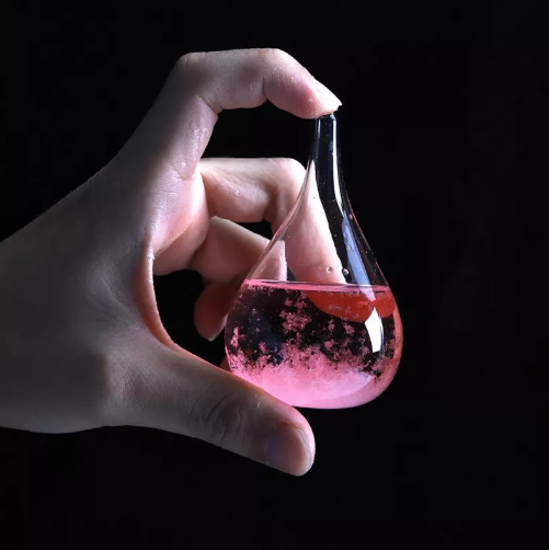 В зависимости от изменений атмосферного давления в колбе образуются кристаллы разных форм. Например, если погода спокойная и безоблачная, то раствор будет прозрачным, если жидкость становится мутной, а кристаллы принимают форму маленьких звездочек, то быть грозе и т.д.