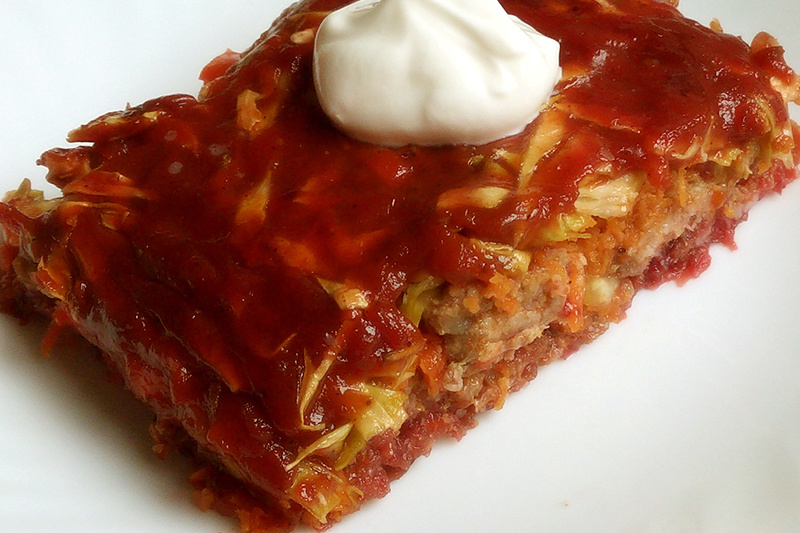 Высыпаем оставшуюся половину капусты и заливаем поверхность несколькими ложками томатного соуса. Отправляем форму в разогретую духовку и выпекаем при 180 градусах приблизительно 35 минут. Перед подачей запеканку с капустой и фаршем лучше полностью остудить, чтобы ее было проще нарезать. Приятного аппетита.