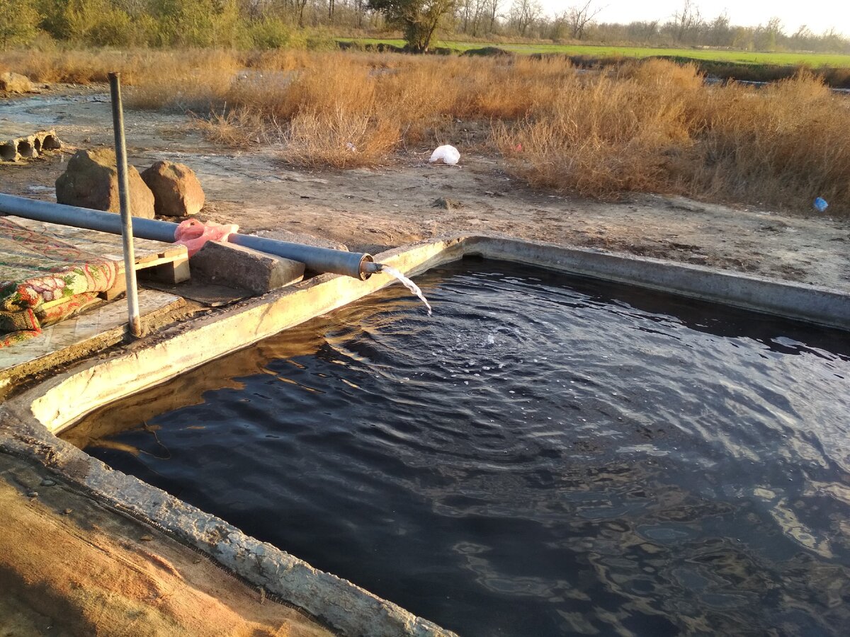 Вода в ячейке проточная, через дырки в бетоне выливалась прямо в поле. Образовалось озерцо. Грязное, конечно.