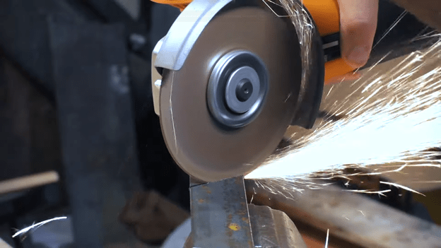 Первым делом, нам нужно сделать три заготовки из металлического уголка. Для этого размечаем линии реза под углом в 45 градусов и вырезаем наши заготовки.