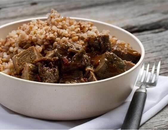 - К мясу и гречке добавьте содержимое MAGGI® На второе для Гречки по-купечески и воду, перемешайте и доведите до кипения. Уменьшите огонь и тушите под крышкой 25 минут.