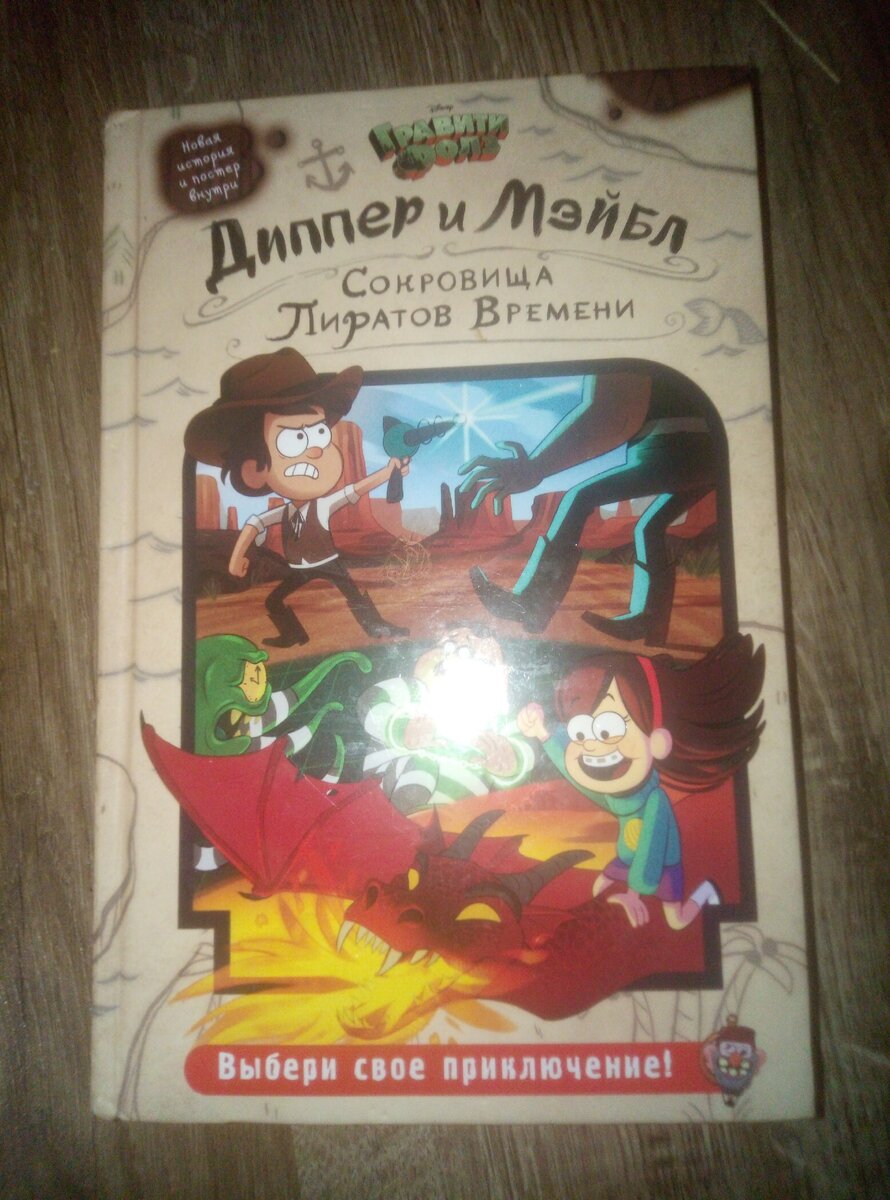 Эта книга написана по мотивам популярного американского мультсериала "Гравити Фолз". И начинается она вполне обычно, как одна из серий всем нам знакомого мультфильма. Но главная фишка этой книги, что она предлагает выбрать свое приключение, составить свою собственную историю.
