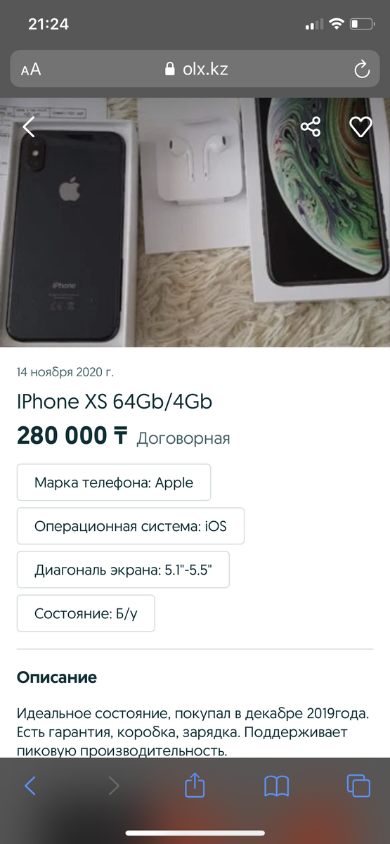 И так, в обычный субботный день мне в голову пришла мысль продать свой старенький IPhone Xs, который купил я год назад. Вечером, я выложил объявление на OLX (Казахстакий аналог Авито).