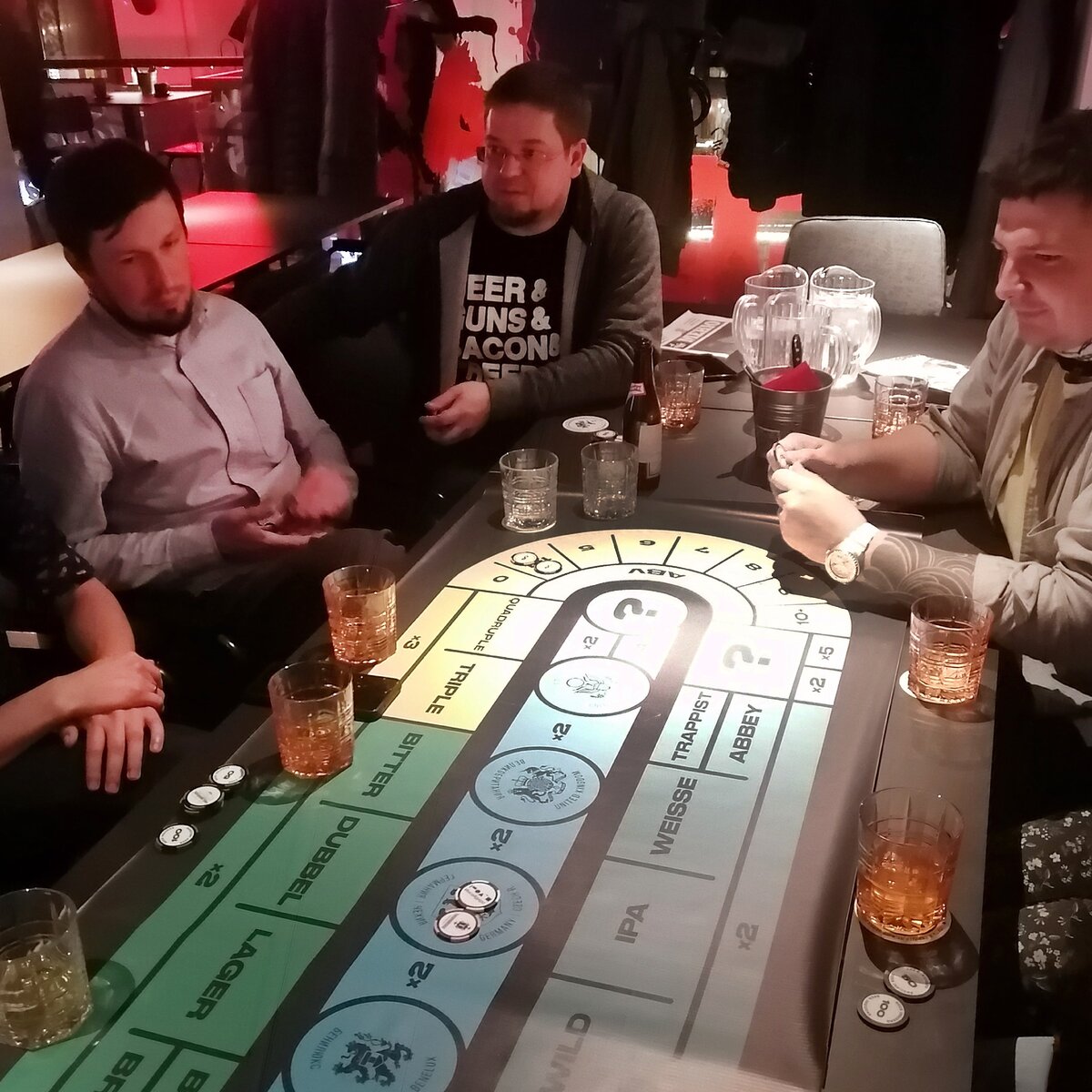Ну и главное — это весело! Два часа игры-дегустации пролетели незаметно за шутками, обсуждениями и непосредственно пробами. Формат будет интересен и полезен как тем, кто разбирается в пиве, так и тем, кто совсем в нём ничего не понимает. Демократичное, вкусное, нетривиальное и алкогольное развлечение для всех. Если кто-то предложит на такое сходить — настоятельно рекомендую! Если нужно развлечь гостей — устройте пивное казино дома. Купите разного по цене, стилям и странам происхождения пива, и пусть все отгадывают и делают свои ставки. Можно без фишек и поля, просто записывайте ответы и начисляйте баллы за правильные. Глядишь, и обычный пятничный загул приобретёт нотки эдьютейнмента!