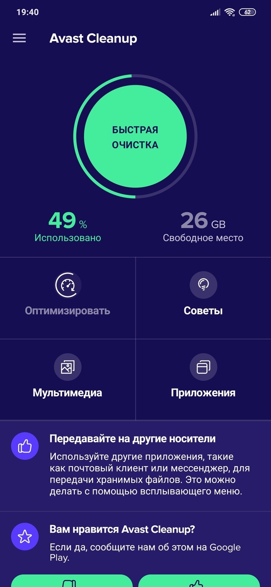 Есть много приложений для очистки и оптимизации вашего смартфона ,но для меня это номер 1 . Удобный и красивый интерфейс ,много полезных функций.