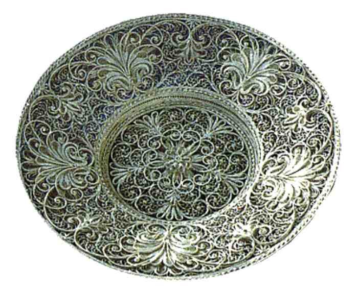 В ювелирном искусстве в изготовлении художественных изделий часто использовалось золото, платина, серебро. Соединялись с жемчугом, стеклом, янтарем. Как техника использовались приемы литья, ковки, конфаранье (придание поверхности матовости и зернистости) которое достигалось при помощи тупого шила или трубочки. Ювелирное искусство средневековья Сокровищница Венской Империи Ювелирное искусство этрусков Кроме этого использовалось оброн, гравировка или резьба, чернь, зернь, инкрустация, филигрань. Искусство Древнего Египта отличалось пристрастием к ярким полихромным эффектам. Из материалов использовалось золото, аметист, лазурит, яшма, бронза, изумруды. Из технических приемов гравировка, чеканка, холодная эмаль (представляла собой вставки из стеклянной пасты между золотыми перегородками.) в Древнем Двуречьи (Аккад, Ассирия, Шумер, Вавилония) использовался метод холодной эмали и лазурит. Для сравнения в Трое и Микенах были найдены сосуды с изображениями каракатиц, морских звезд, быков, при чем цветовая гамма данных изделий была довольно консервативна. Не малую известность эллинского искусства имели серебряные изделия. В Иране в III-VII веке находили сосуды из серебра и золота, обрамленные гравированными изображениями. Для мусульманских стран Востока характерно растительный орнамент. Особой пышностью украшений отличилась Древняя Индия. В средневековом Китае обрабатывали различные материалы. Хотя мастера обрабатывали изделия более строго, стремясь подчеркнуть природные линии и фактуру. Ювелирное искусство средневековья Ювелирное искусство средневековья XV-XVIII веков, отметим немецкое серебро мастеров Ямницера и эмали (И.М. Дилингера), английское художественное серебро. Французское серебро стало популярным в конце XVII века. А XVIII пришелся расцвет эпохи рококо. На смену которому пришла строгость эпохи ампир, представителями которой были Ж.Б. Одио и М.Г Бьенне- придворных мастеров Наполеона I. Ближе к средине XIX века механизируется производство ювелирных изделий, от чего изделия становятся более упрощенными. Все чаще используется аквамарин, цветное стекло, горный хрусталь, вместо драгоценных камней. Много изделий этого периода это эклектика в совершенстве, ярым противником которой были модернисты Р. Лалик и другие. К этим произведениям принадлежат скифские и сарматские сосуды из погребений Причерноморья, Нижнего Поволжья, Прикубанья. Среди мастеров Грузии, Дагестана, Армении уже славились профессионалы черни, резьбы, скани, а так же перегородчатой эмали. Для Новгорода XI- XII преимущественно свойственны предметы литургического назначения, чеканное обрамление икон. Обрамление эмалью и чернью особенно стало популярным в XVI веке. Со временем в XIX в Москве появляются крупные фабричные предприятия золотого и серебряного дела. Среди них всем известные предприятия П.Ф. Сазикова, П.А Овчинникова, И.И Хлебникова. Сокровищница Венской Империи Сокровищнице Венской империи, которая называется домом Габсбургов, хранятся вещи, которые изготовлялись для семьи, которая управляла Австрией в течении шести столетий. Глядя на эту коллекцию можно прийти к выводу, что у королевской семьи был изысканный вкус. В IX веке правители относились к своим сокровищам прагматично. Как только у них возникала нужда, они сразу закладывали вещи и корону в то