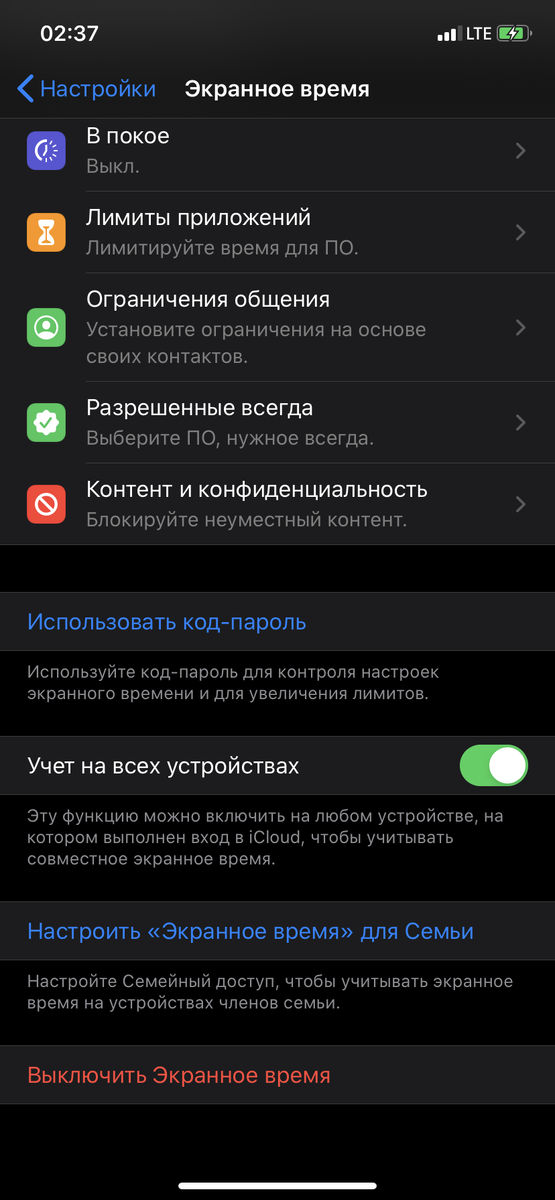 Начнём мы конечно с отключения функции «экранное время» , функция на мой взгляд совершенно бесполезны и к тому же очень много задействует аккумулятора для работы.