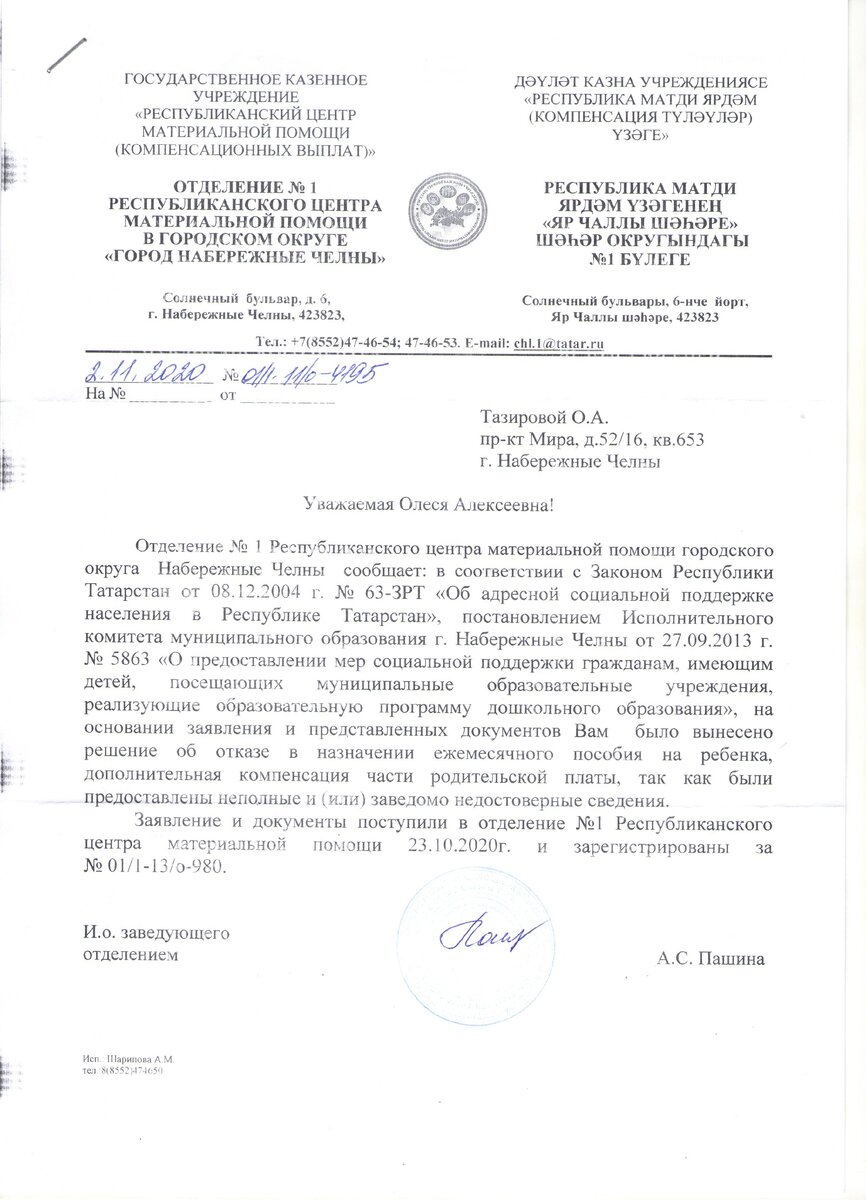 Самое интересное что в начале этого года я подавала точно такие же данные и мне назначили пособие на ребенка до 16 лет, работала я в той же самой компании что и сейчас, а вот на этот раз отказали