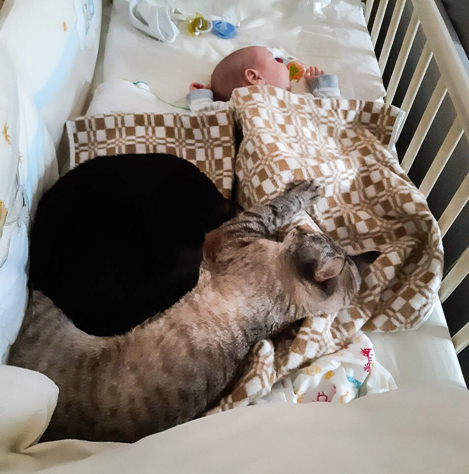 Да да, мое счастье на фото. Мои любимые котики признали детей.