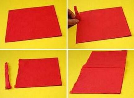 Разворачивать салфетку не нужно, но обязательно оторвите небольшую полоску, до 1 см, с двух сторон квадрата. Это придаст конечной поделки большей реалистичности.